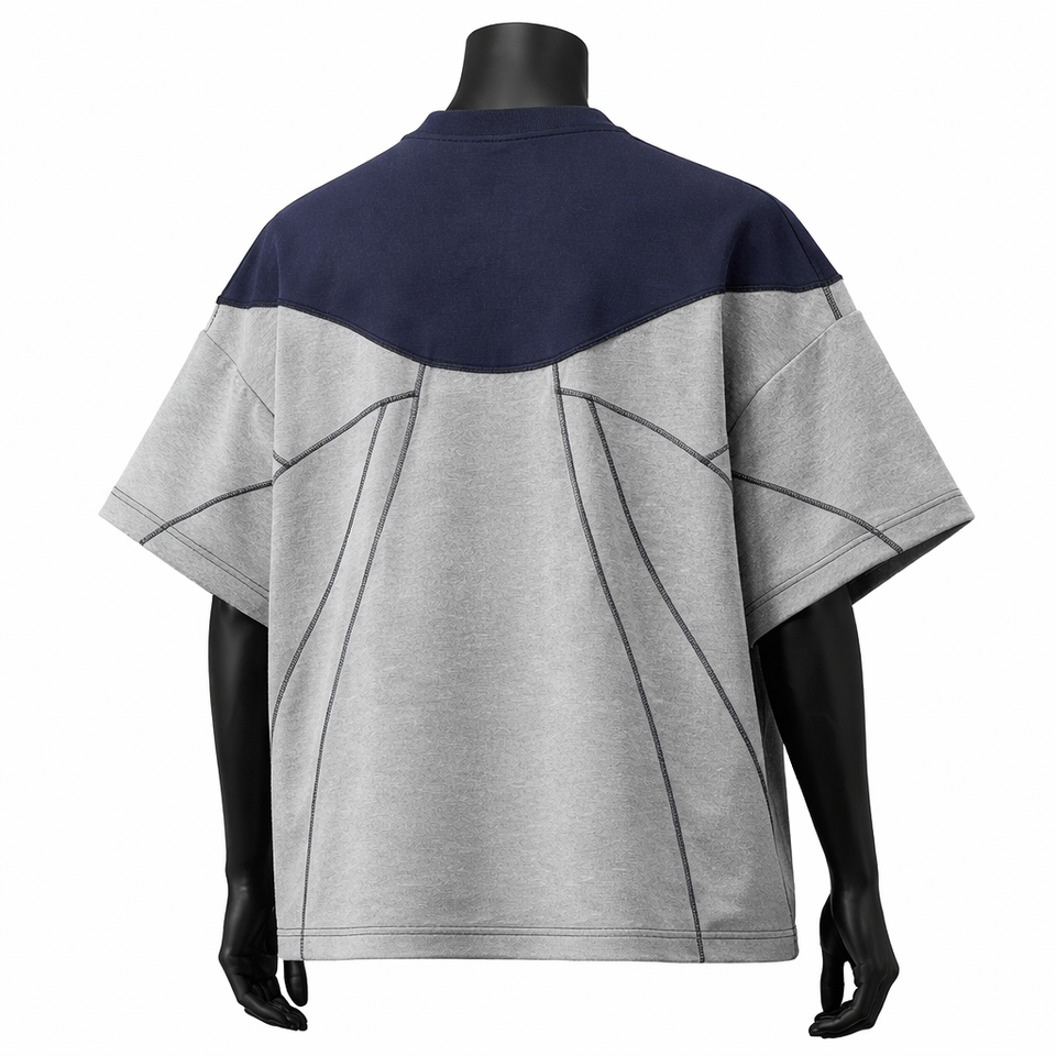 Camiseta de hombre oversize personalizada con paneles en contraste, estilo streetwear con bloques de color, de algodón, de manga corta, casual, de moda, con cuello ringer.