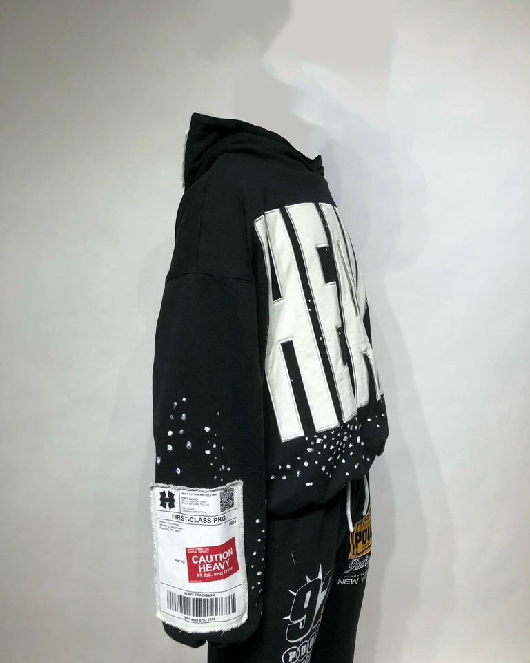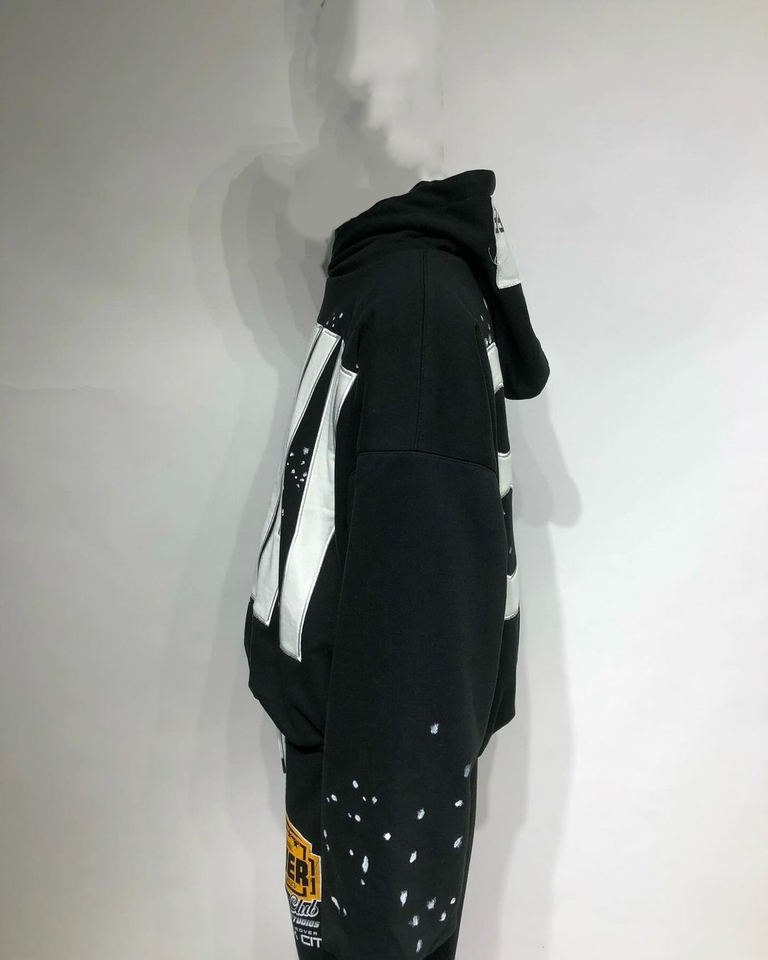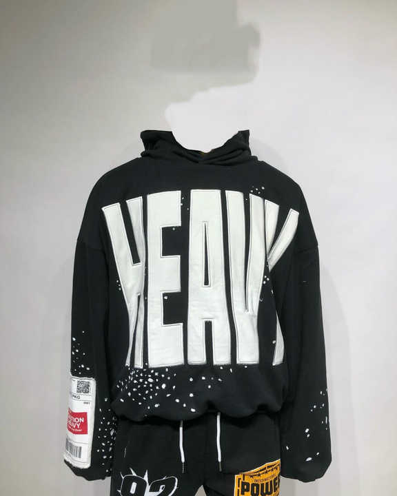 Sudaderas con capucha bordadas con parches desgastados de gran tamaño personalizados con estampado de salpicaduras allover drop shoulder pulóver Sudadera con capucha