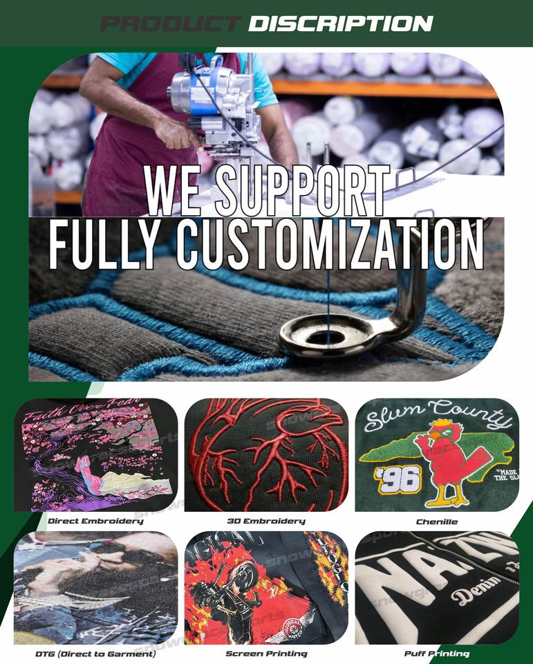 Bordado, Impreso, Lavado, Cuentas, Tinte sencillo, Corbata tintada, Ropa teñida, Color bloqueado, Estampado de hojaldre, Lavado con lejía, Bordado 3D, Tinte de inmersión, Bordado de máquina, Lavado a piedra, Lavado enzimático, Lavado de arena, Láser de lavado, Color del degradado, Lavado ácido, De diamantes de imitación, Bordado de toalla, Aplique, Bordado liso