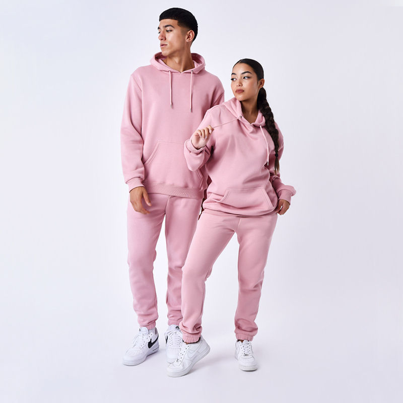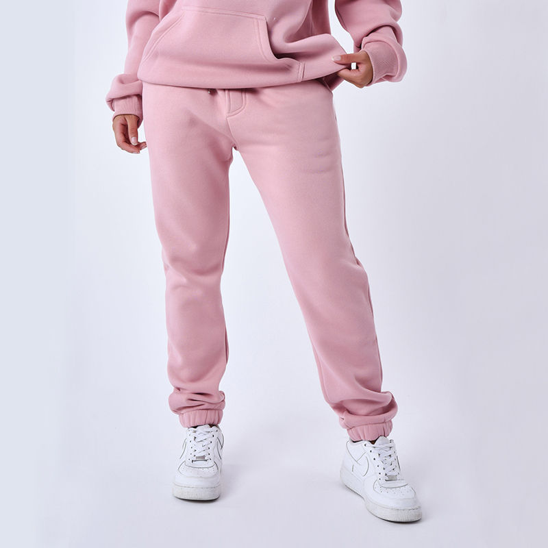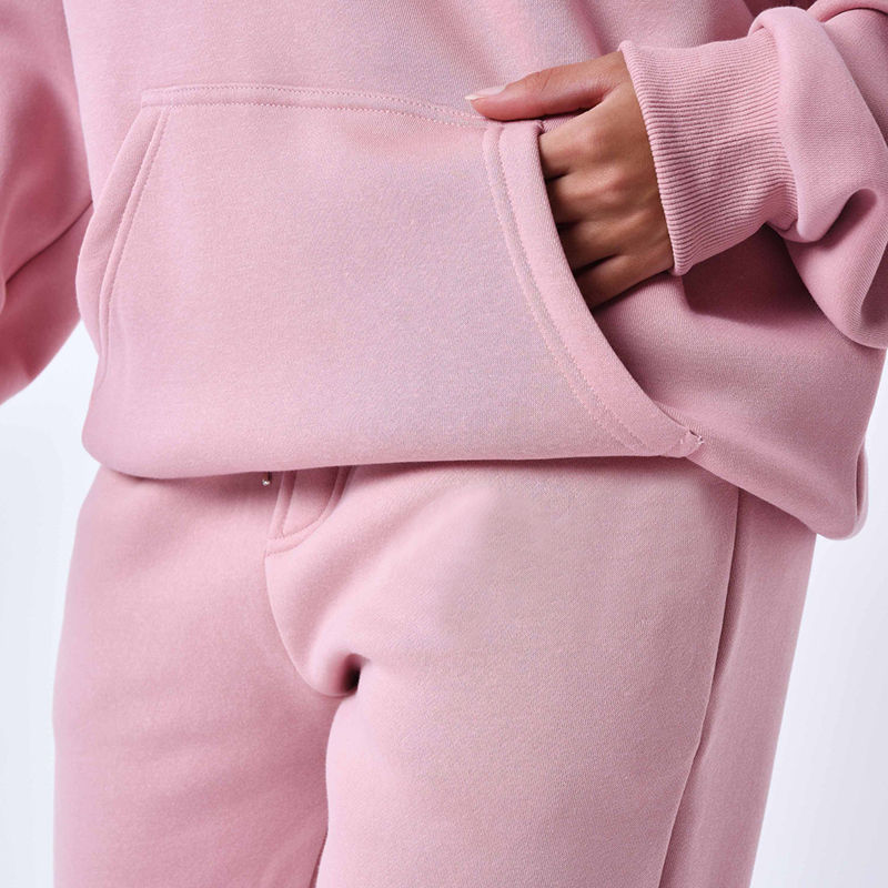 Conjunto de Jogger con capucha de gran tamaño personalizado para mujer patrón sólido bordado a mano pecho canguro bolsillo Cordón-para invierno