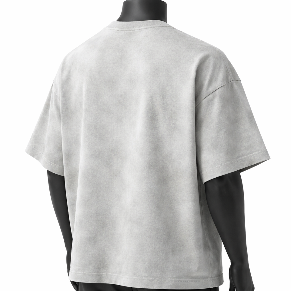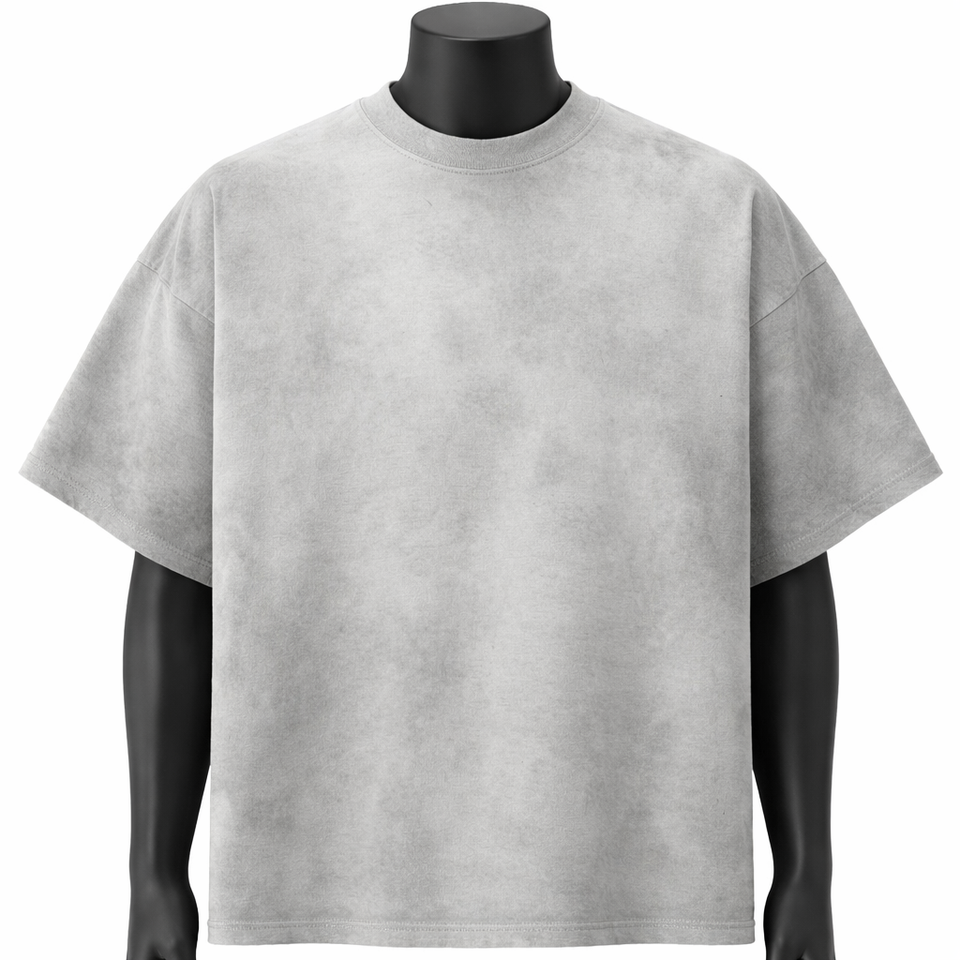 Camiseta Oversize Personalizada Gris Claro Lavado para Hombre, Estilo Vintage, Lisa, de Algodón, Manga Corta, Casual, de Moda, con Ribete