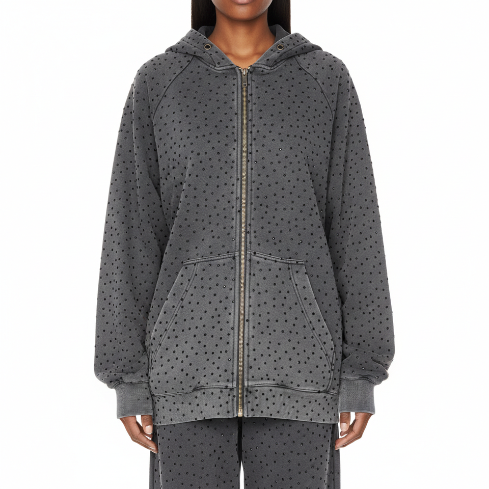 Parche Bordado Personalizado con Pedrería de Gran Tamaño, Logotipo de Ropa Deportiva de Algodón Terry, Estilo Urbano, Efecto Desgastado por el Sol, Servicio OEM