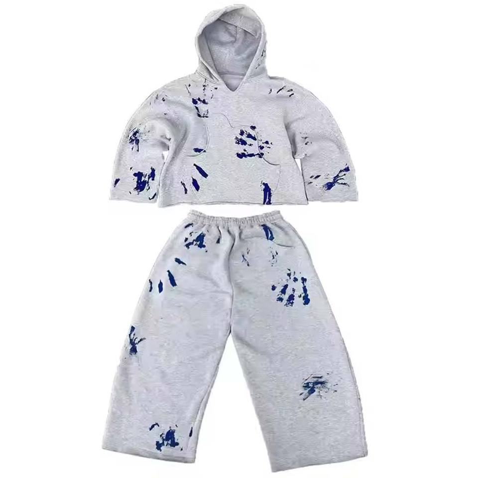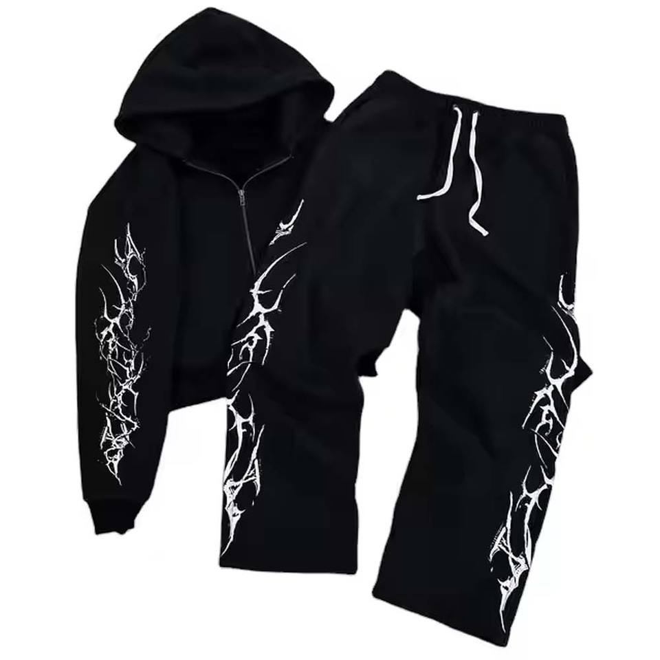 Chándales de diamantes de imitación de gran tamaño personalizados, chándales lavados con ácido de estilo holgado, conjunto de pantalones de chándal y sudadera con cremallera para hombres