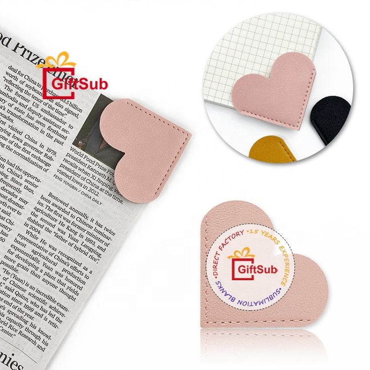 Marcapáginas de corazón de cuero PU personalizado, protector de esquina de libro creativo, soporte de Página de Libro, divisor de libro y revista sencillo