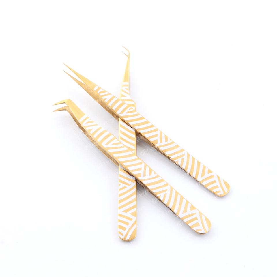 Pinzas de extensión de pestañas postizas de volumen individual de acero inoxidable empaquetadas personalizadas, Punta puntiaguda