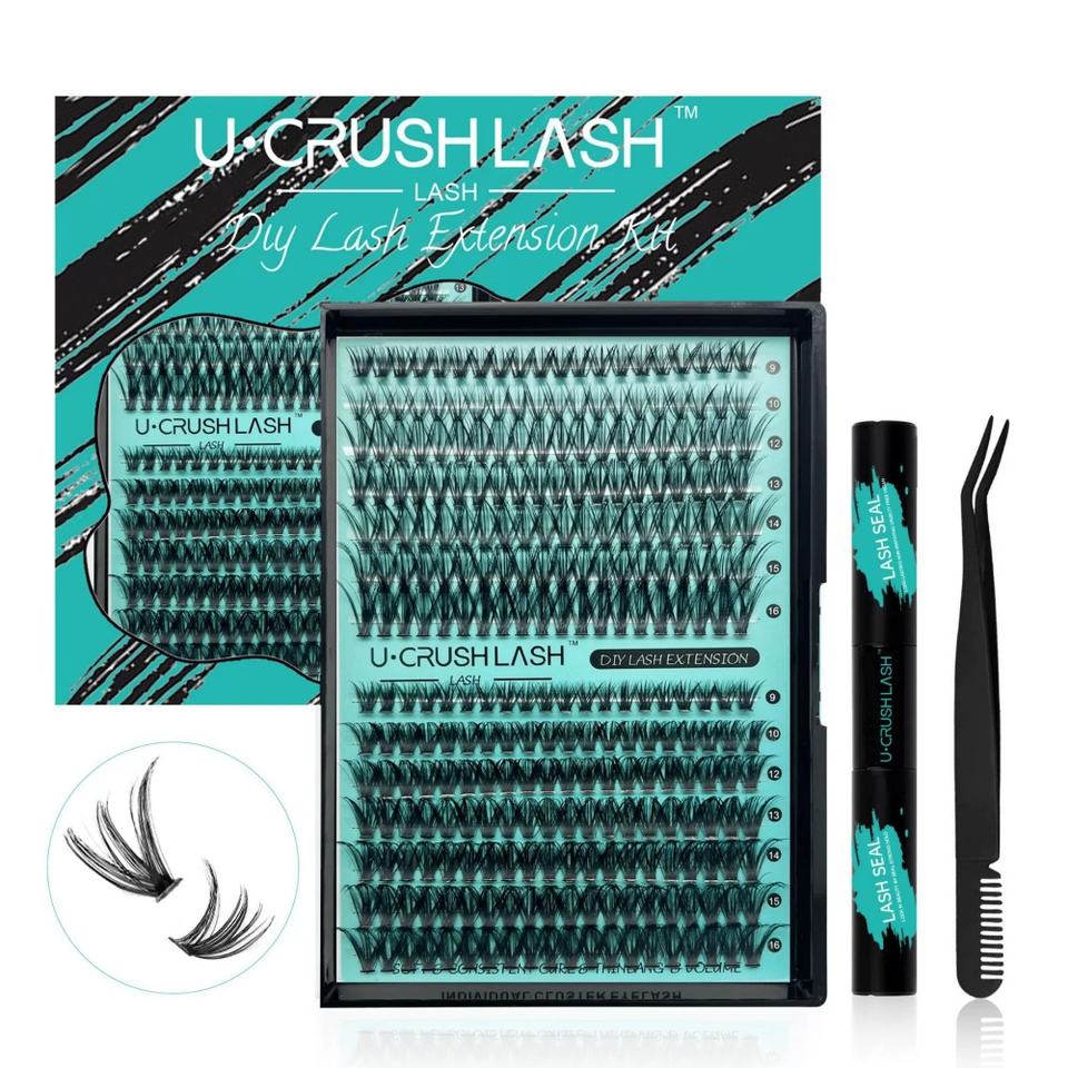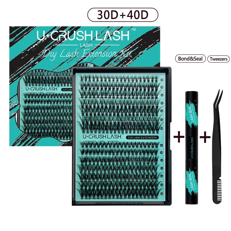 Kit de extensión de pestañas Diy con logotipo de embalaje personalizado segmento precortado pestañas postizas 50D 100D racimos de pestañas al por mayor conjunto de pestañas de racimo