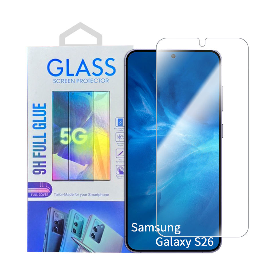 Película de vidrio templado Samsung Google serie S26 con logotipo de embalaje personalizado 0,33mm de alto vidrio de aluminio desbloqueo de huellas dactilares