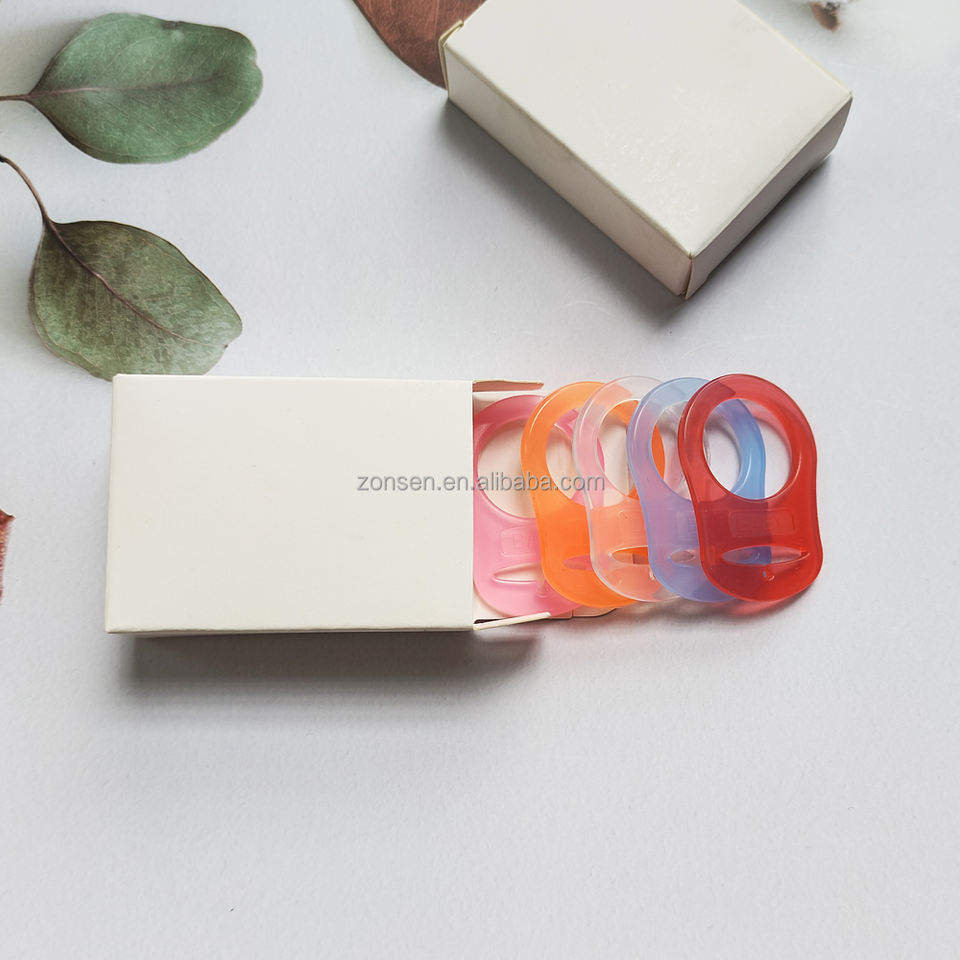 Adaptador de chupete de silicona suave masticable para bebé, accesorios de cadena de mordedor, anillo MAM de silicona, embalaje personalizado, 5 unidades/caja