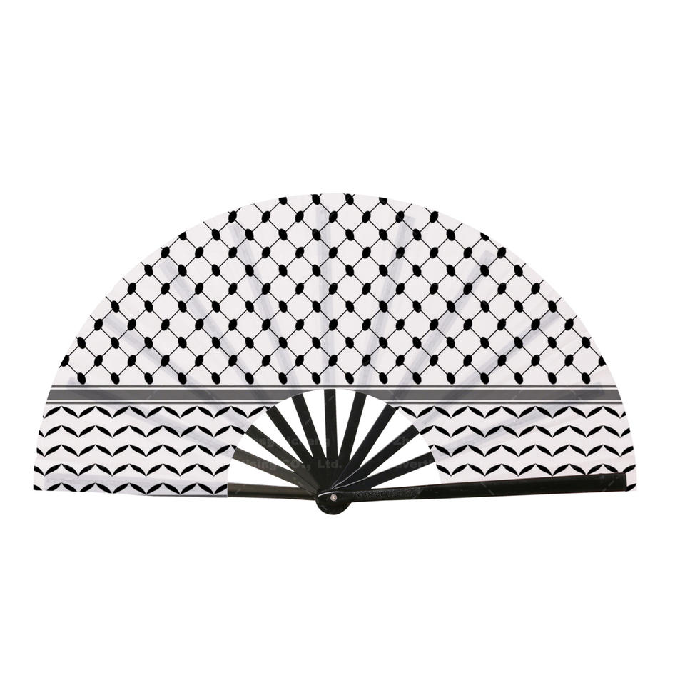 Abanico de Mano con Patrón de Keffiyeh de Palestina, Abanico Artesanal Plegable de Bambú de 33cm, Regalo de Apoyo Solidario