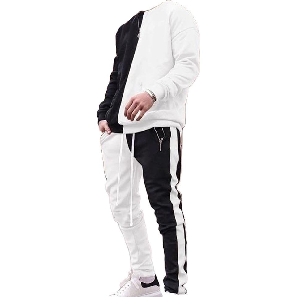 Conjuntos deportivos personalizados para hombre, de corte ajustado, en blanco y negro, para correr, hacer ejercicio en el gimnasio, con chaqueta.