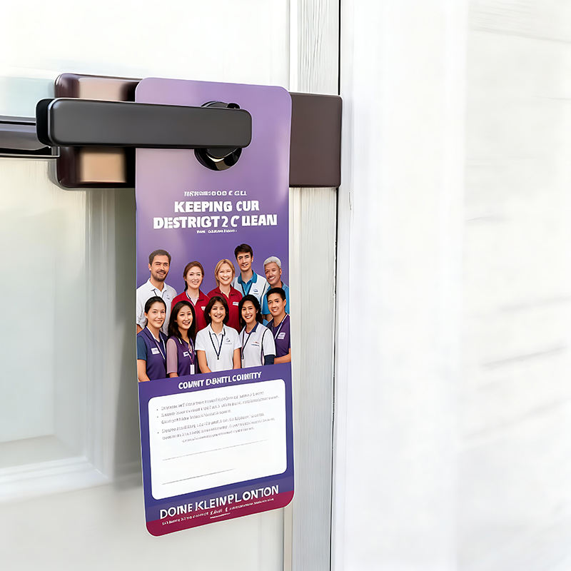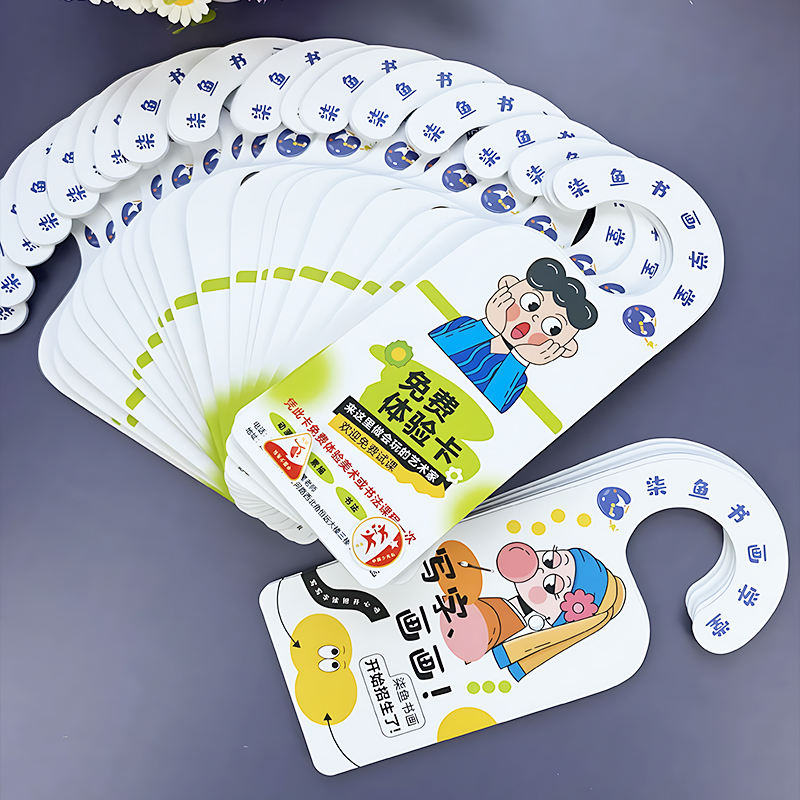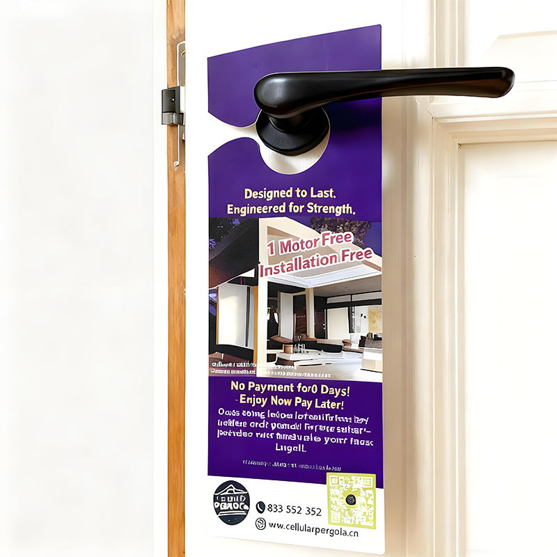 Colgador de Puerta de Cartón Personalizado con Folleto de PVC e Impresión Offset a Doble Cara para Regalo Promocional de Inmobiliarias y Tarjetas de Visita