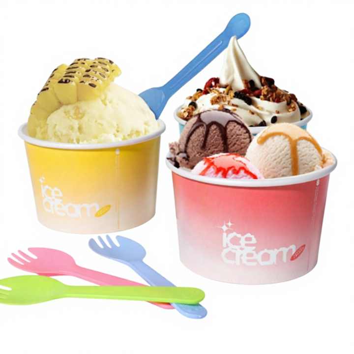 Vaso de Papel Personalizado para Helado con Logotipo, 4oz 5oz 8oz 16oz, Desechable, Tamaño Personalizado, Vaso Blanco Impreso para Yogur Helado