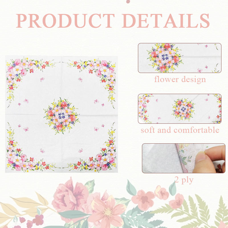 Servilleta de papel personalizada diseño de flores desechables servilleta degradable para cenas familiares y decoración de vajilla de fiesta