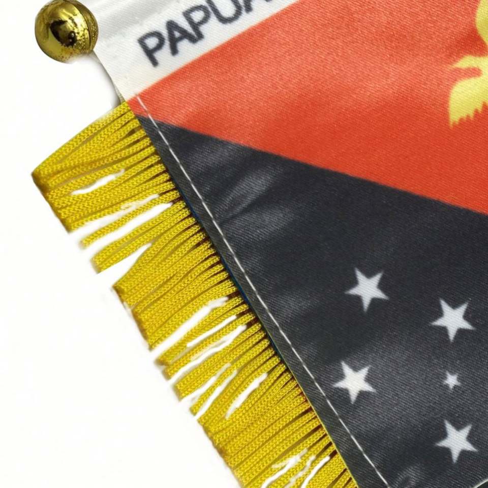 Mini Bandera de Satén Personalizada de Papúa Nueva Guinea con Borlas Amarillas, Impresa Digitalmente para Uso Educativo