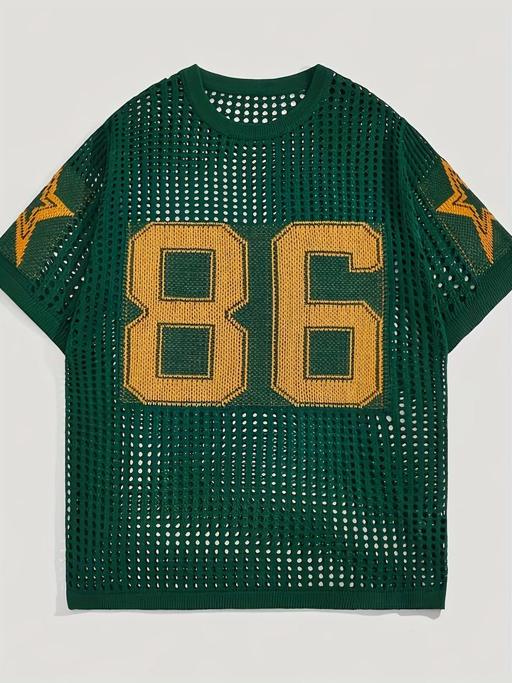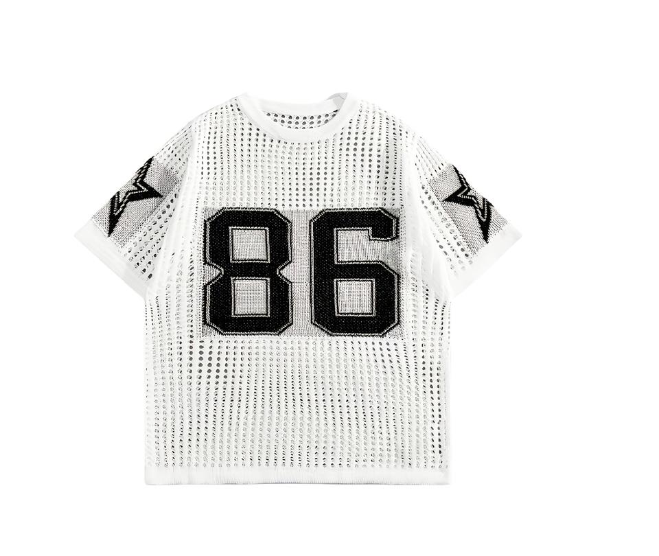 Camiseta de Fútbol Americano de Malla con Diseño de Patchwork Personalizado, de Alta Calidad, Retro, Holgada, de Manga Corta, Transpirable, de Poliéster para Verano