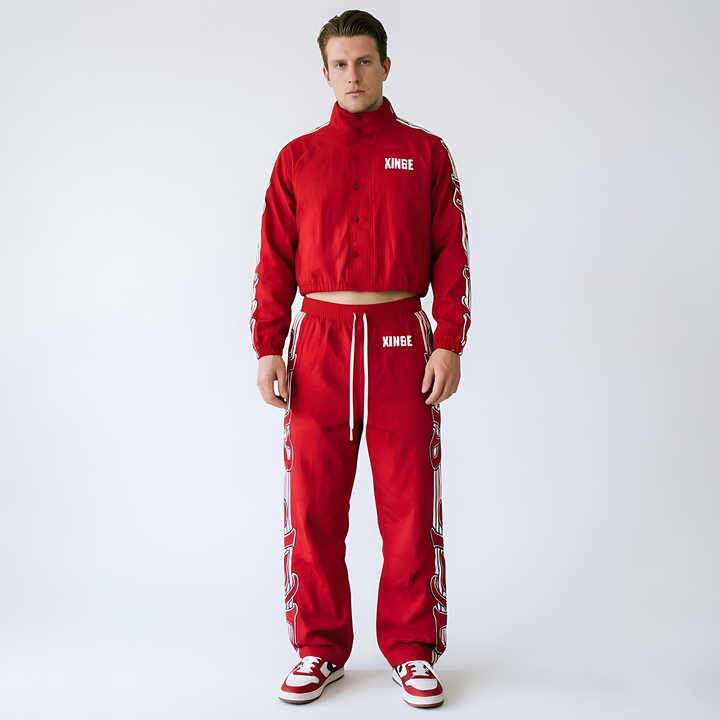 Conjuntos Deportivos Personalizados con Parches, Chaqueta de Nylon con Cierre y Pantalones, Conjunto Deportivo para Hombre, Cortavientos, Conjuntos de Gimnasio, Traje Deportivo Bordado para Hombre