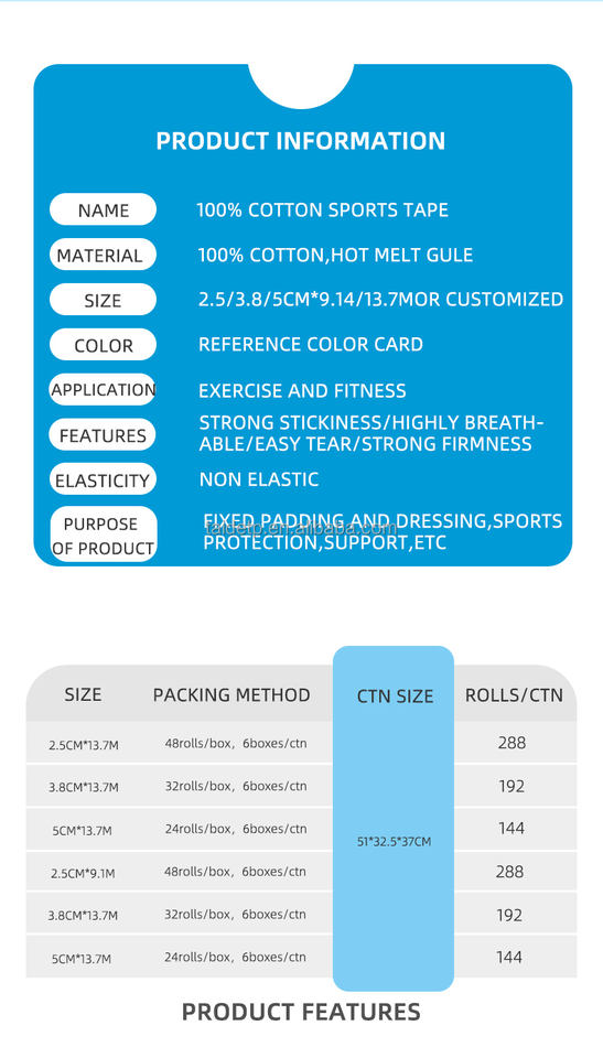 Patrón personalizado 5cm * 7M Cinta atlética Vendaje deportivo de algodón fuerte para rodilla Muñeca Tobillo Dedo-Protección impermeable para boxeo