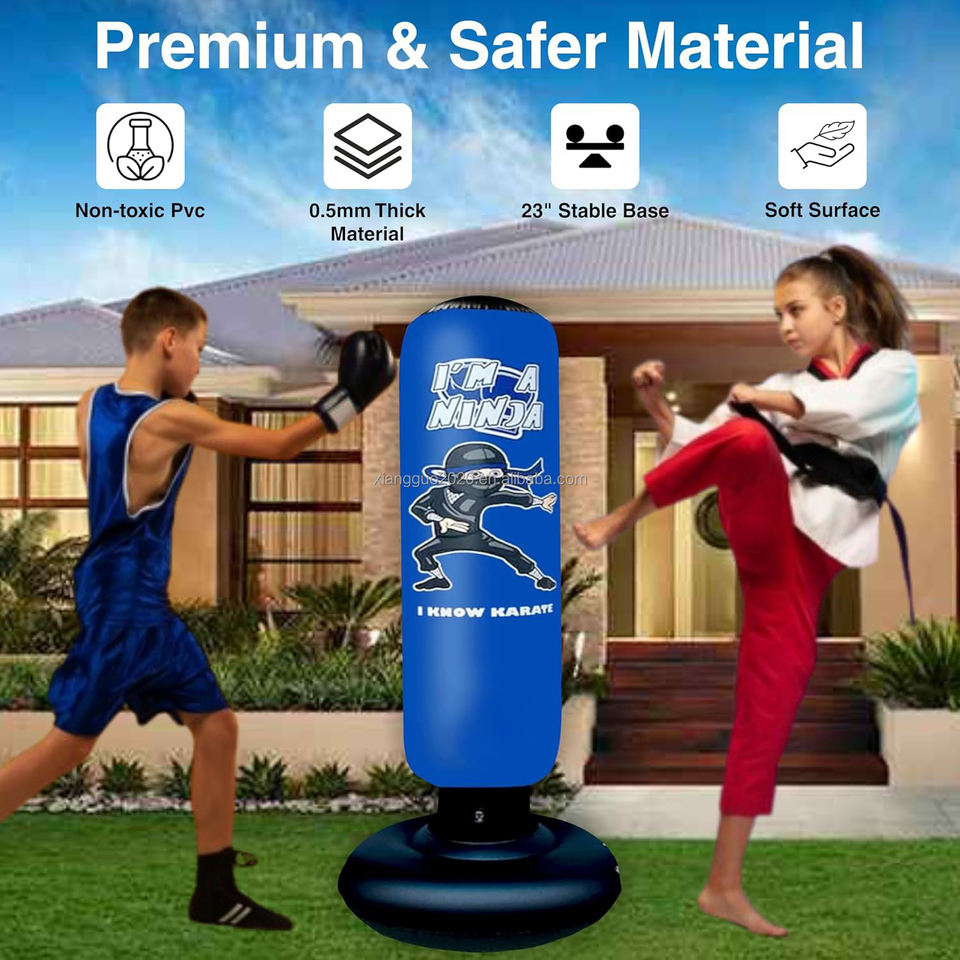 Saco de boxeo inflable para niños con patrón personalizado, bolsa de boxeo vertical para poste inflable de Fitness