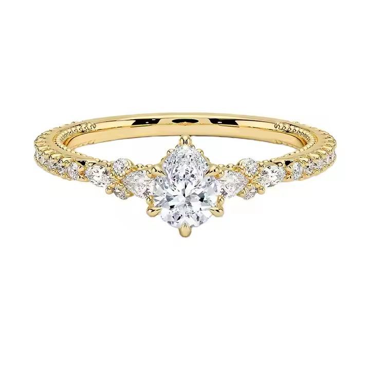 Anillo solitario de moissanita de corte de pera personalizado en plata esterlina S925 con anillo de mujer de joyería chapado en oro