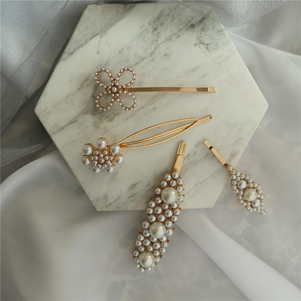 Pinza para el pelo con diamantes de imitación para mujer y niña, accesorios personalizados para el cabello, pasadores de Metal con perlas y flores