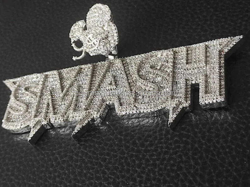 Colgante personalizado Vvs Iced Out Moissanite 3D V para Vendetta, colgante de dibujos animados, Hip Hop Pass Diamond Tester, colgante de plata para hombres