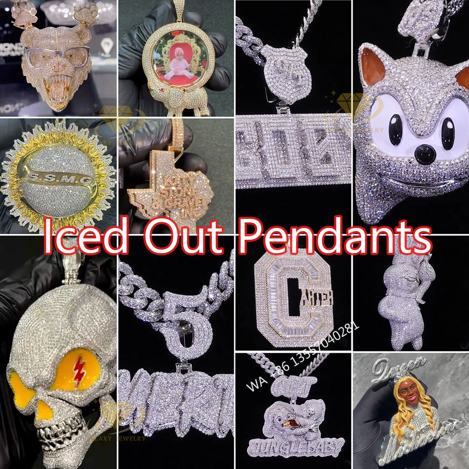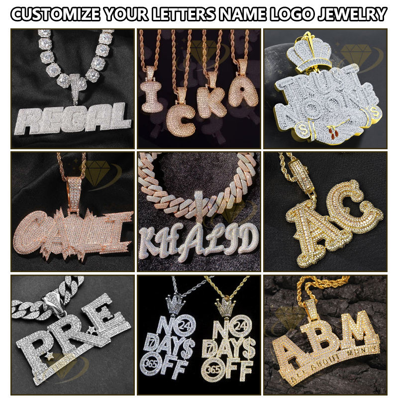 Colgantes personalizados de fábrica artesanal 925 Plata sólida encanto cadena imagen broche Moissanite letra colgante collar inicial hombres regalo