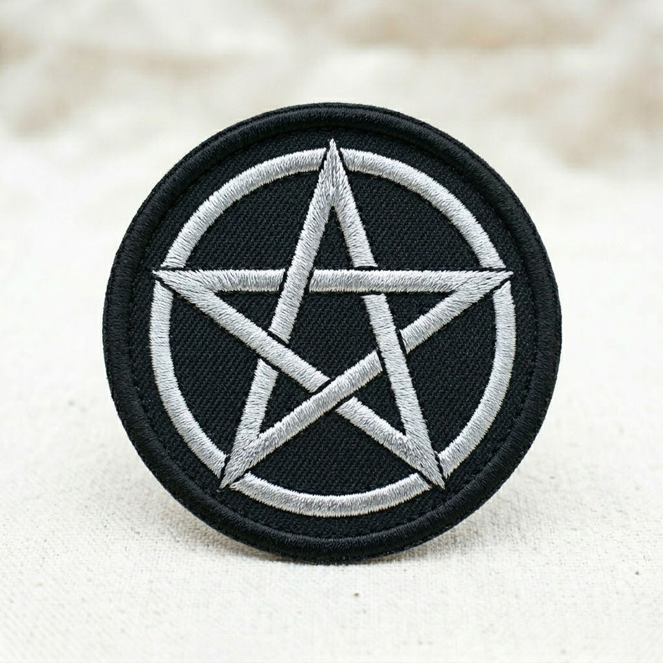 Parche Termoadhesivo Bordado a Máquina con Estrella de Pentagrama Personalizada, Logotipo Gótico Oculto Wiccano, Emblema para Coser al por Mayor para Ropa y Bolsos