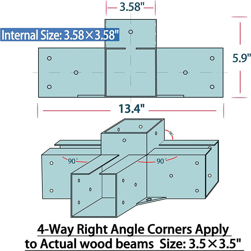 Pergola Gazebo Kit Soporte de base y soporte de esquina de ángulo recto de 3 vías