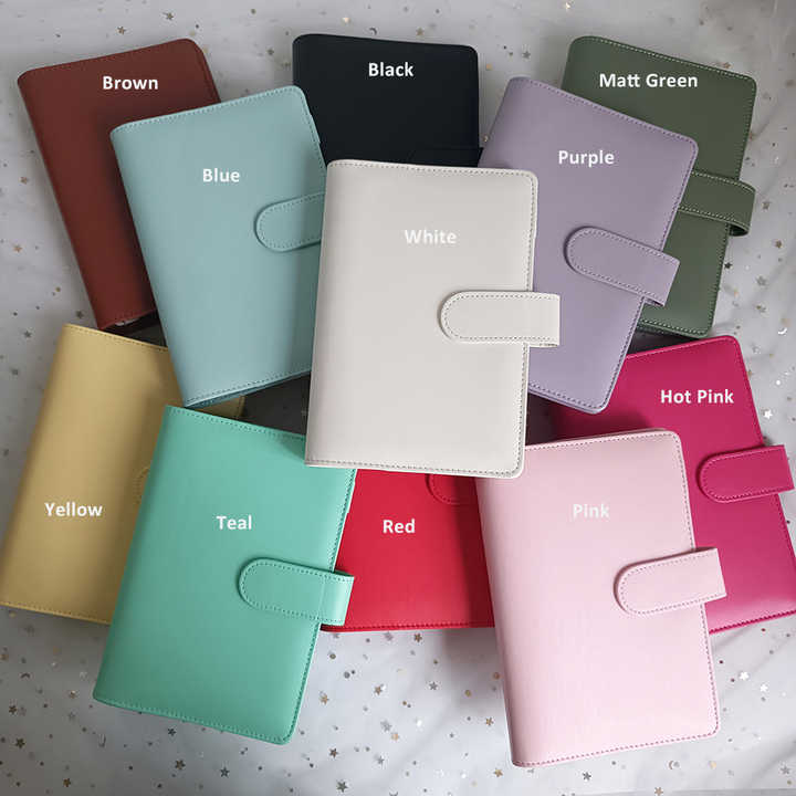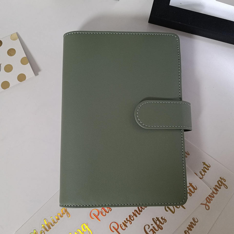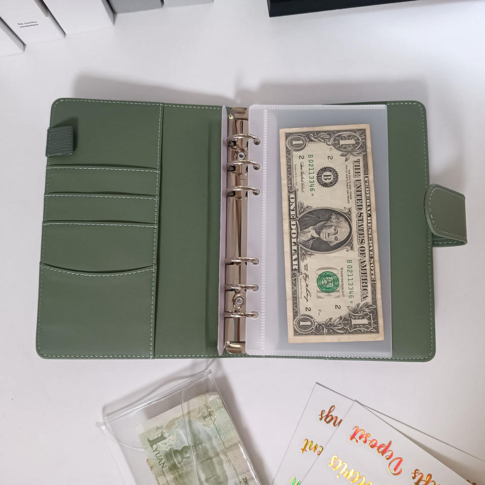 Cubierta de libro de cuero liso de lujo A6 de hojas sueltas portátil personalizada 52 semanas de ahorro de dinero Carpeta de desafío planificador de presupuesto