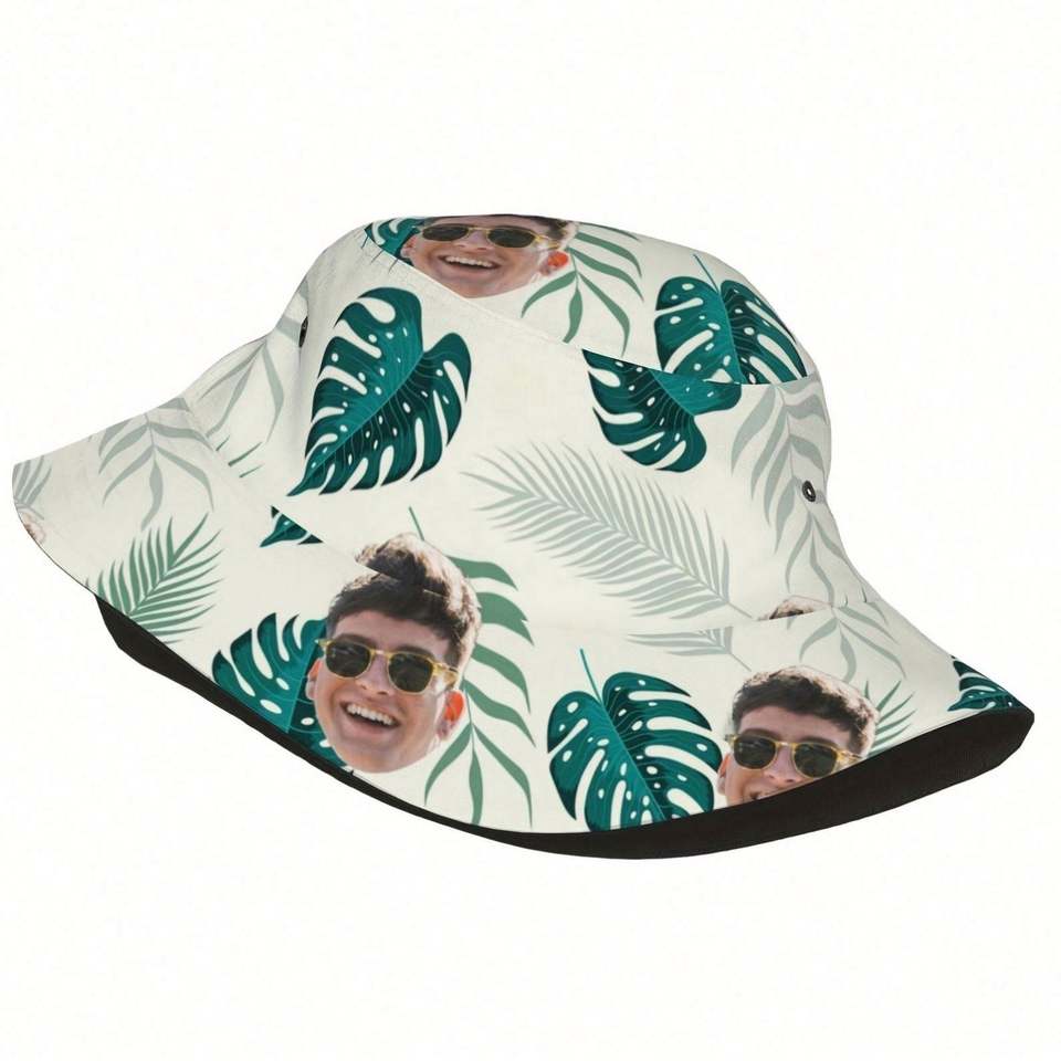 Sombrero de Pescador Personalizado con Foto, Diseño de Hojas Tropicales, Divertido para Viajes de Verano, para Hombres y Mujeres, para Uso Diario, con Dibujos Animados