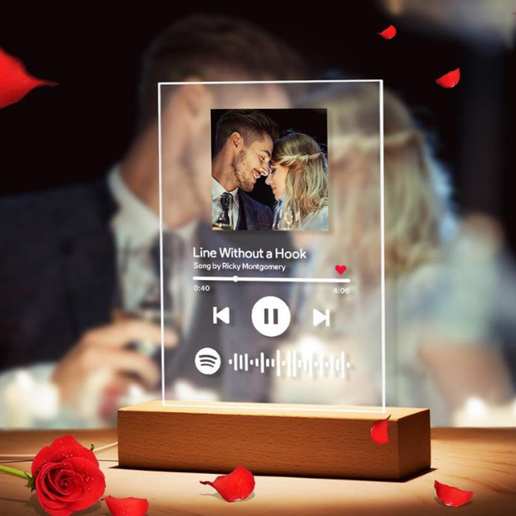 Cubierta personalizada para álbum de fotos y música, lámpara acrílica con Base de madera grabada con luz nocturna, nombre, canciones, marco de fotos, regalo