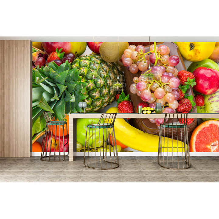 Papel Tapiz Personalizado con Foto, Decoración de Pared para Cocina, Frutería, Restaurante, Papel Tapiz con Estampado de Frutas, Verduras y Animales