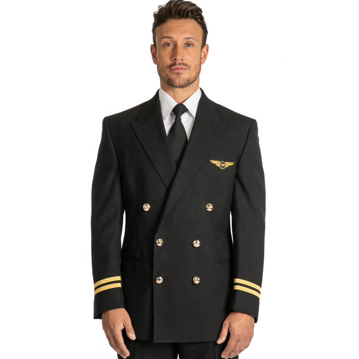 Conjunto de dos piezas personalizado de uniforme de piloto de avión para hombre, tela transpirable, ajuste cómodo, fábrica de ropa de trabajo de línea aérea profesional