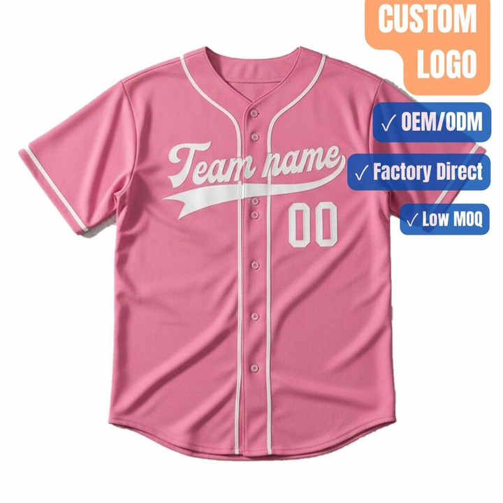 Camiseta de Béisbol Rosa Personalizada con Botones, Uniforme de Equipo con Logotipo Personalizado, Fabricante de Ropa Deportiva