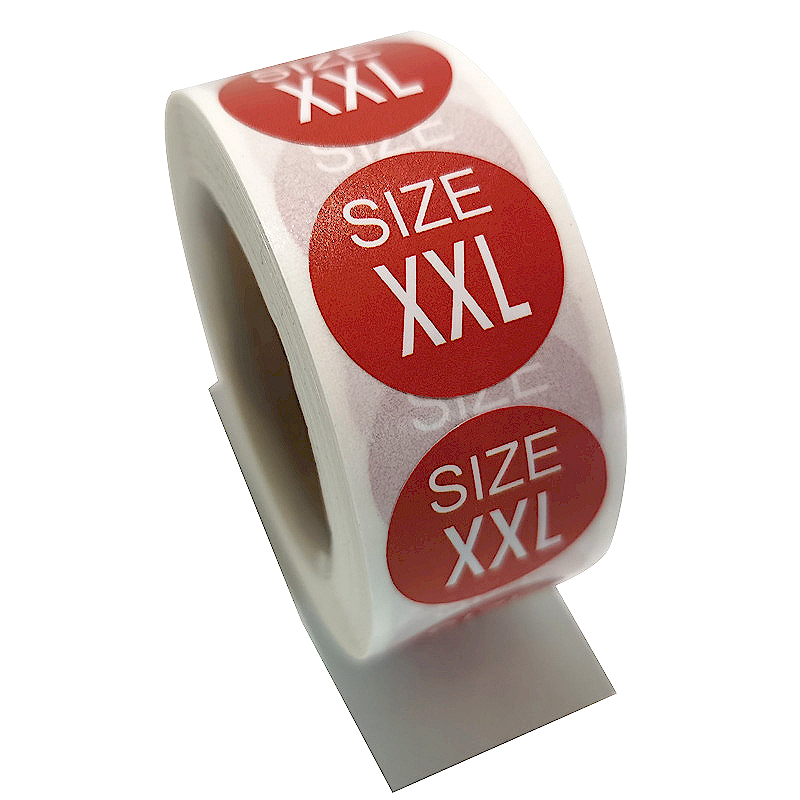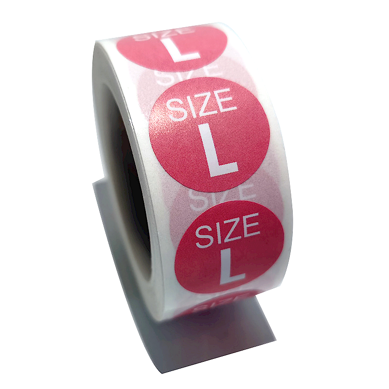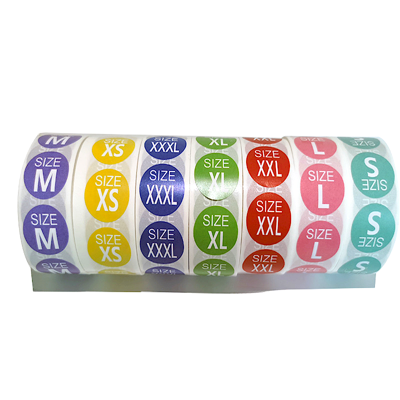 Pegatinas de talla de ropa Rosa personalizadas, vestido redondo, pegatinas de talla de ropa, etiquetas impresas redondas de Color para etiqueta de ropa