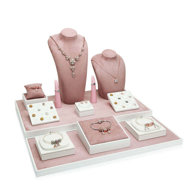 Expositor de Joyería Rosa Personalizado para Mostrador, para Anillos, Bustos, Collares, Pulseras, Cuentas u Otros Accesorios de Joyería