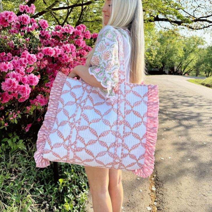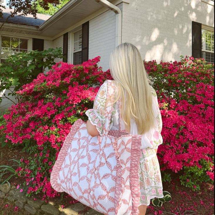 Bolso Hobo Grande Personalizado con Estampado Rosa, Bolso de Mano con Correa Larga para Mujer, Bolso de Compras para Playa y Aire Libre, Bolso de Hombro de Algodón con Volantes
