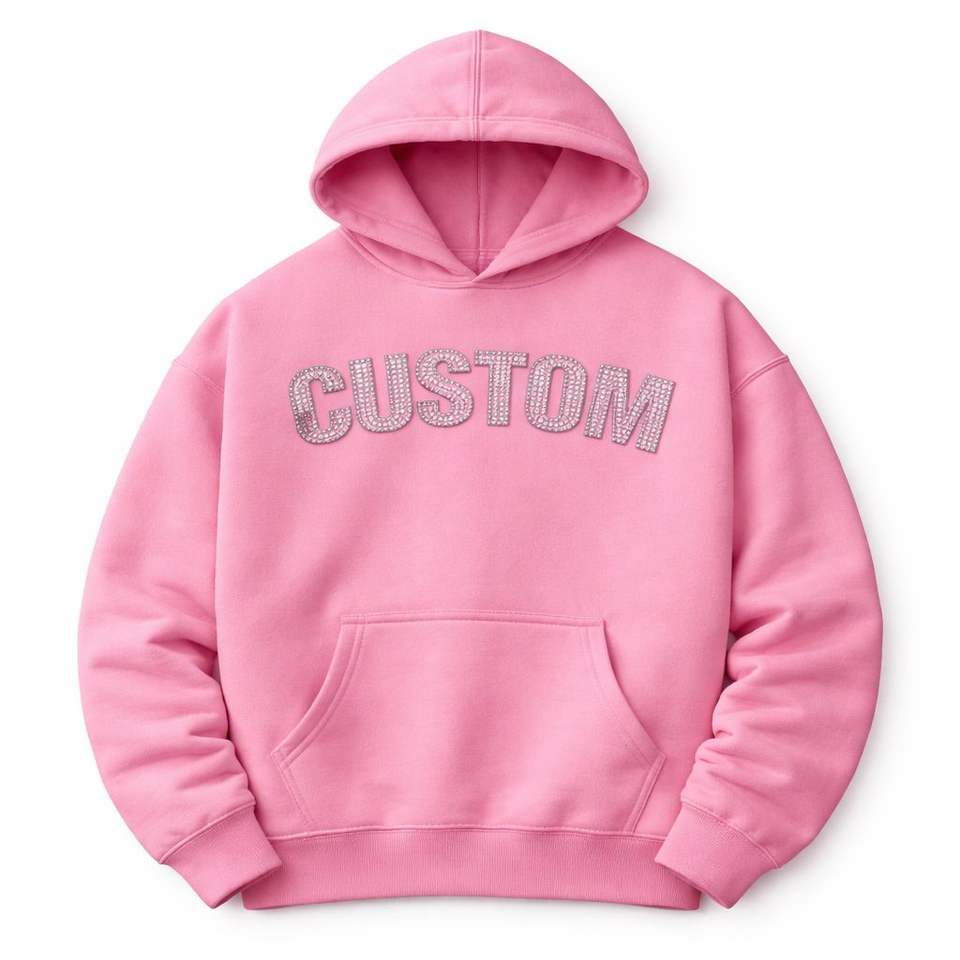 Sudadera con Capucha Extra Grande de Invierno, 100% Algodón, con Pedrería Rosa Personalizada, Estilo Urbano, Impresión Digital, OEM, ODM