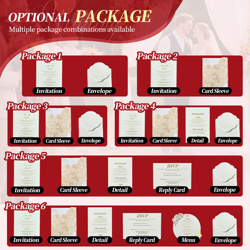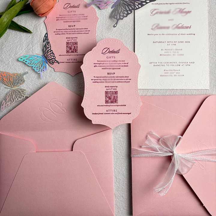 Tarjetas de Invitación de Boda Rosadas Personalizadas con Sobres, Cinta Elegante y Monograma en Relieve, Tarjetas de RSVP Personalizadas Incluidas
