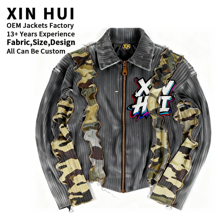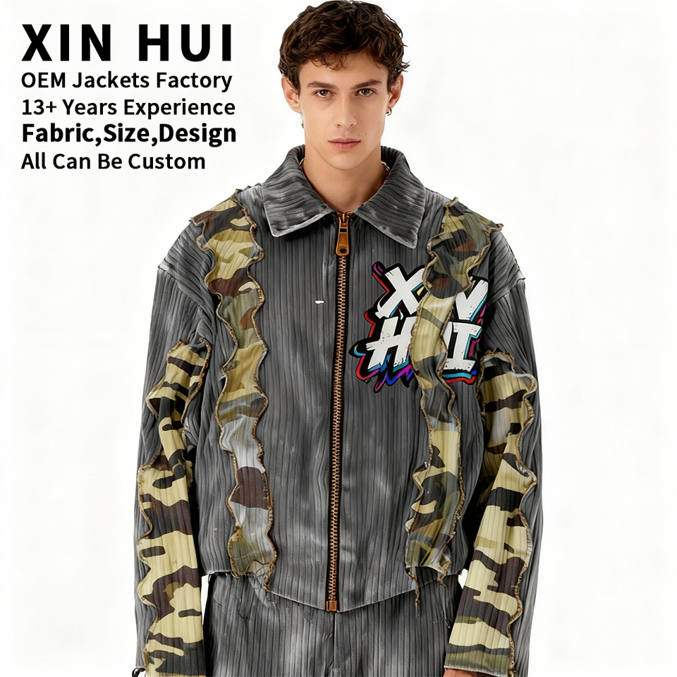 Chaqueta Bomber Personalizada con Parches de Camuflaje, Estilo Urbano para Hombre, Logotipo Bordado, Cierre Completo, Fabricación OEM
