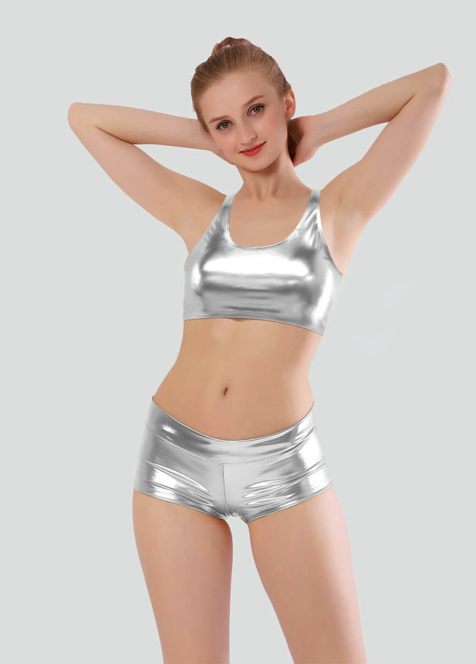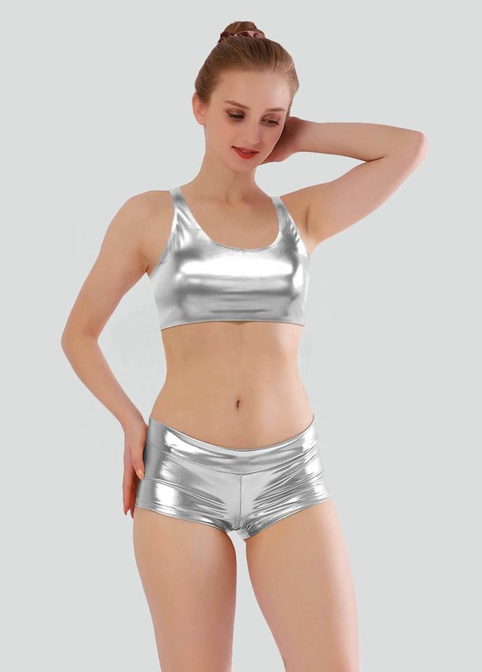Shorts Casuales de Mujer con Cintura Elástica, Cordón Metálico, Tallas Grandes, con Lentejuelas, Recubrimiento de PU y Tela con Memoria