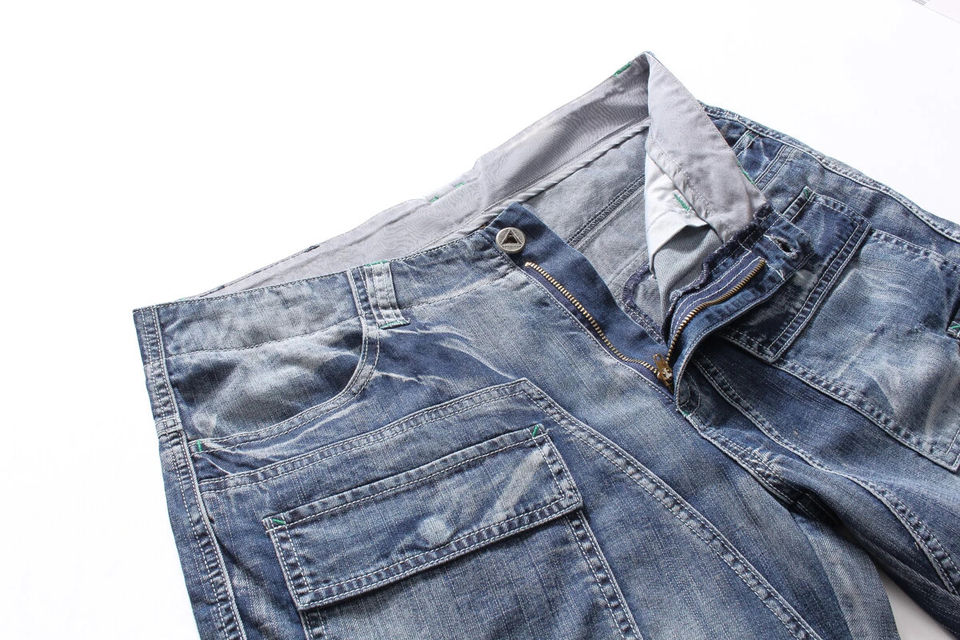Pantalones Cortos de Mezclilla Cargo para Hombre, Tallas Grandes, Transpirables, Estilo Vintage con Bolsillos, Holgados, Casuales de Verano, Diseño Liso, Venta al por Mayor