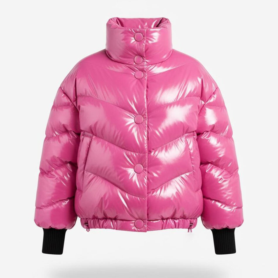 Chaqueta de Invierno Acolchada Reversible Personalizada de Talla Grande para Mujer, Transpirable, Impermeable, con Cierre y Acabado Brillante