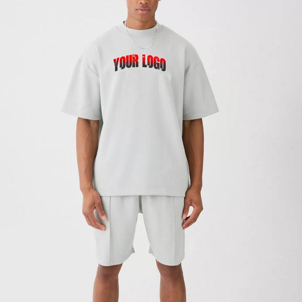 Conjunto de Pantalones Cortos Personalizados de Talla Grande, Poliéster/Algodón, Logotipo Bordado Estampado, Camiseta y Pantalones Deportivos para Hombre, Traje Deportivo de Fútbol