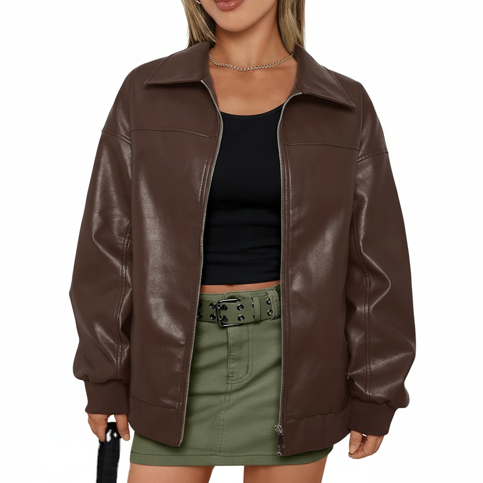 Chaquetas de Cuero Extra Grandes Personalizadas para Mujer, Chaquetas con Cierre, Chaquetas de Motociclista de Imitación, Ecológicas, Transpirables, Modernas para Otoño e Invierno