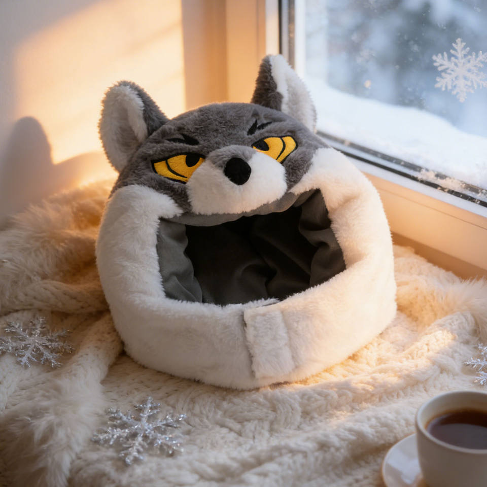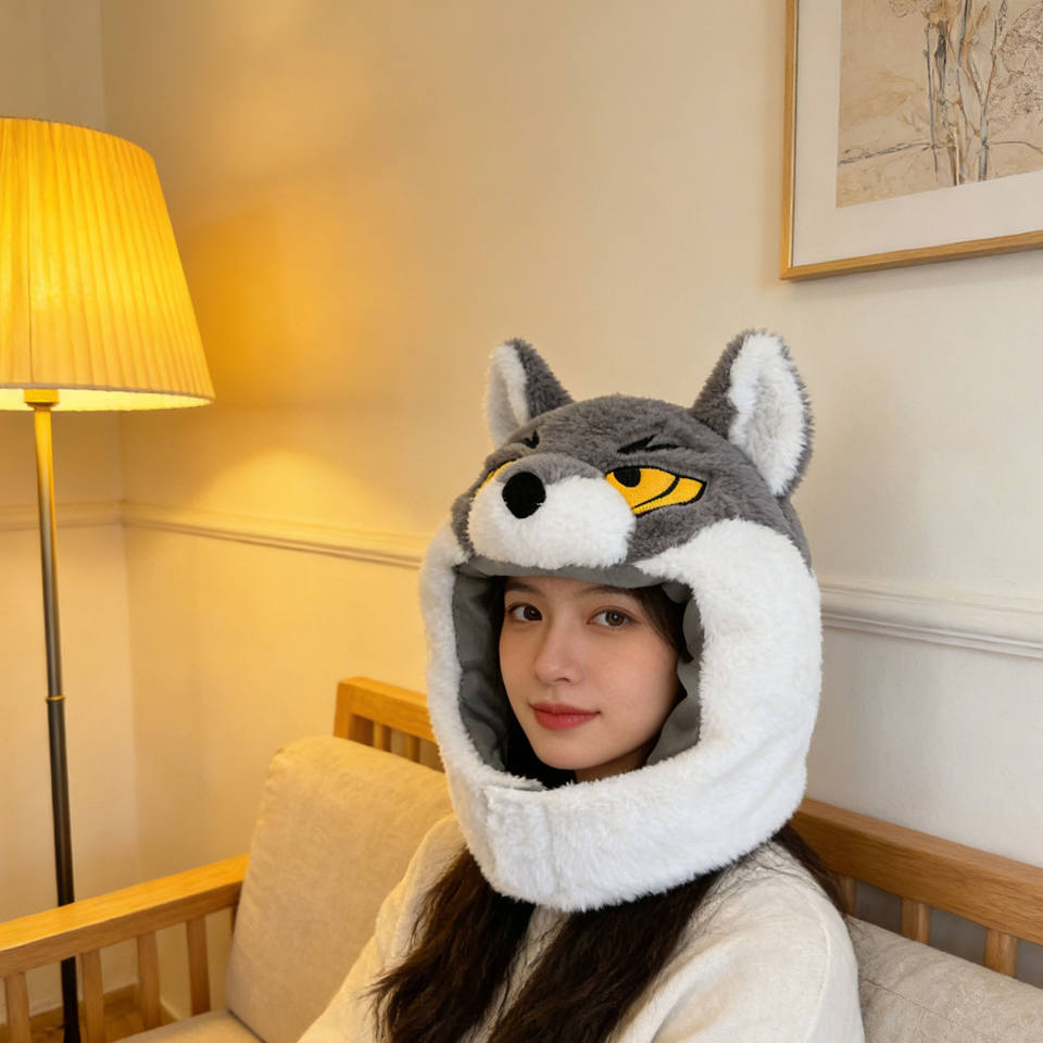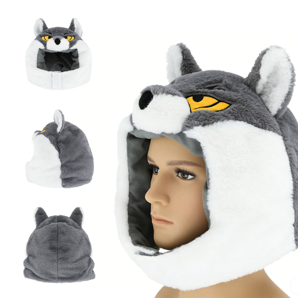 Gorro de Peluche Personalizado con Diseño de Lobo, Material TPE, Relleno de Espuma de Goma, Cálido y Acogedor para el Invierno, Unisex