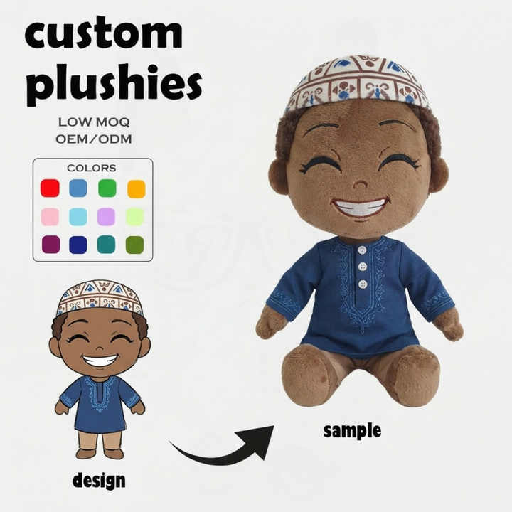 Fabricante de Peluches Personalizados: Diseña un Personaje Cultural Sonriente y Suave. Bolsitas con Diseño de Personajes Culturales. Se Requieren Dos Peluches Hechos a Medida.