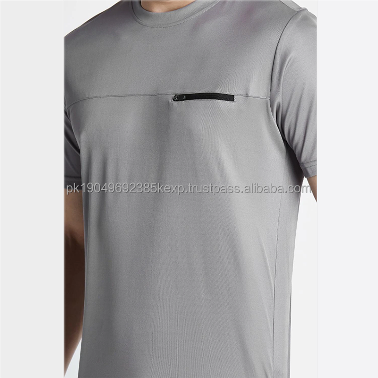 Camiseta Personalizada con Bolsillo con Cremallera para Hombre, Corte Regular, 100% Algodón, Felpa, Transpirable, de Secado Rápido, con Bolsillo con Cremallera