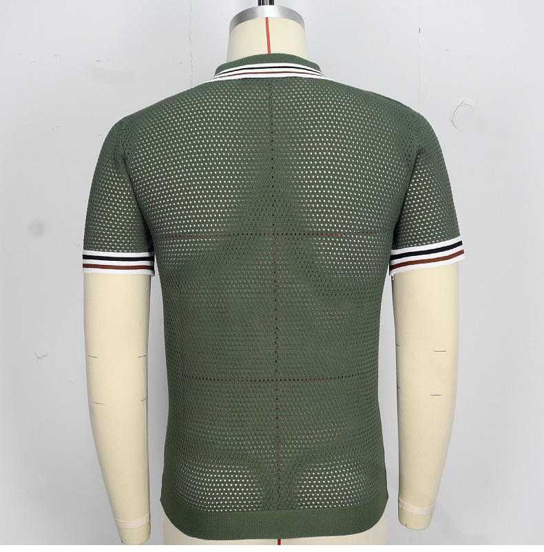 Suéter Personalizado para Hombre, Tejido a Rayas con Hilo Teñido, Manga Corta, con Bolsillos en Contraste, Servicio OEM