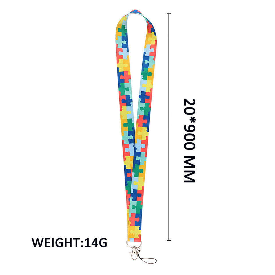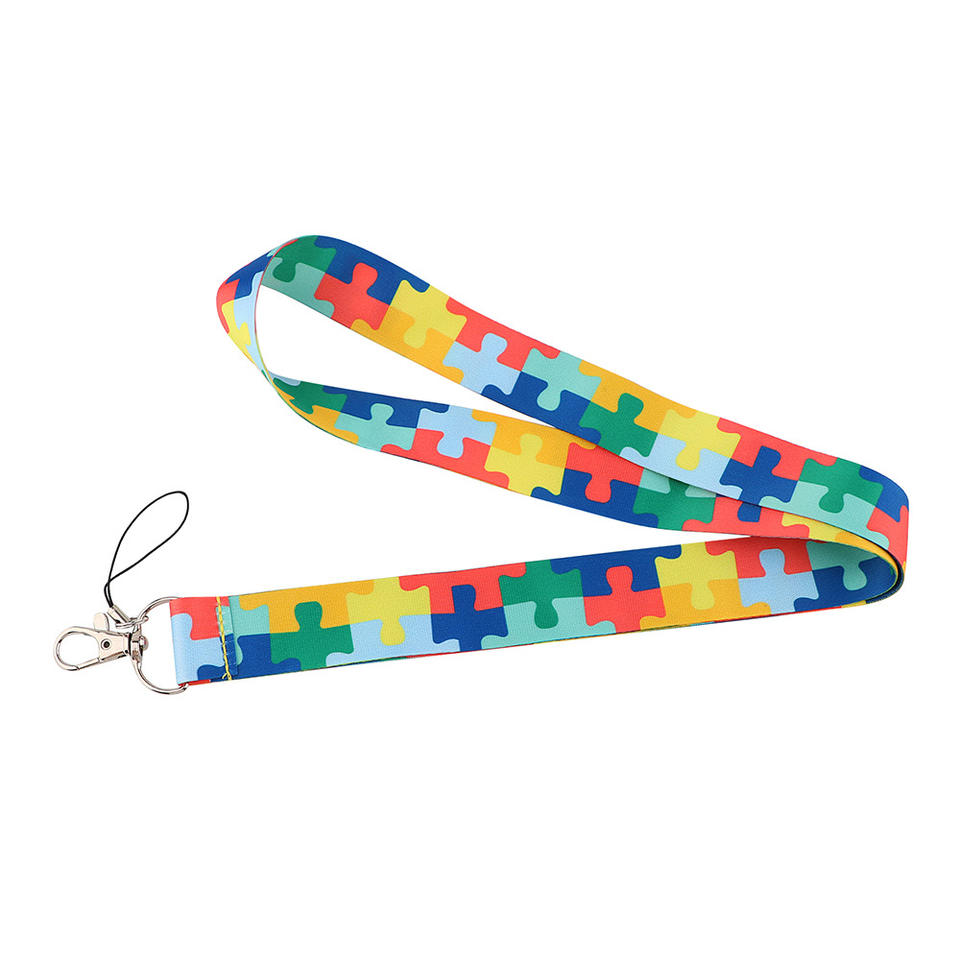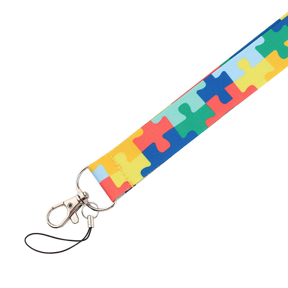 Cinta de concientización de poliéster personalizada, correa para el cuello, patrón de puzle impreso por sublimación, cordón con gancho de metal